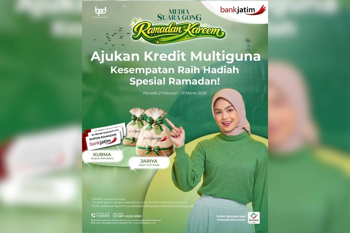 SUARAGONG.COM – Menyambut Ramadan 1447 Hijriah, Bank Jatim menghadirkan beragam program dan promo spesial bagi nasabahnya. Mengusung semangat kebersamaan dan keberkahan, rangkaian ini dirancang untuk menemani kebutuhan finansial masyarakat selama Ramadan hingga Idul Fitri.