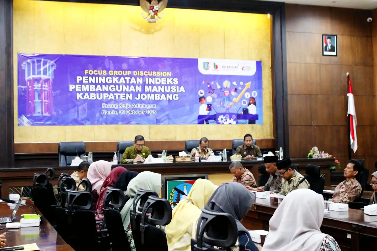 SUARAGONG.COM – Dalam upaya meningkatkan Indeks Pembangunan Manusia (IPM), Badan Perencanaan Pembangunan Daerah (Bappeda) Kabupaten Jombang menggelar Focus Group Discussion (FGD) di Ruang Setjo Adiningrat, Setdakab Jombang, Kamis (9/10/2025).