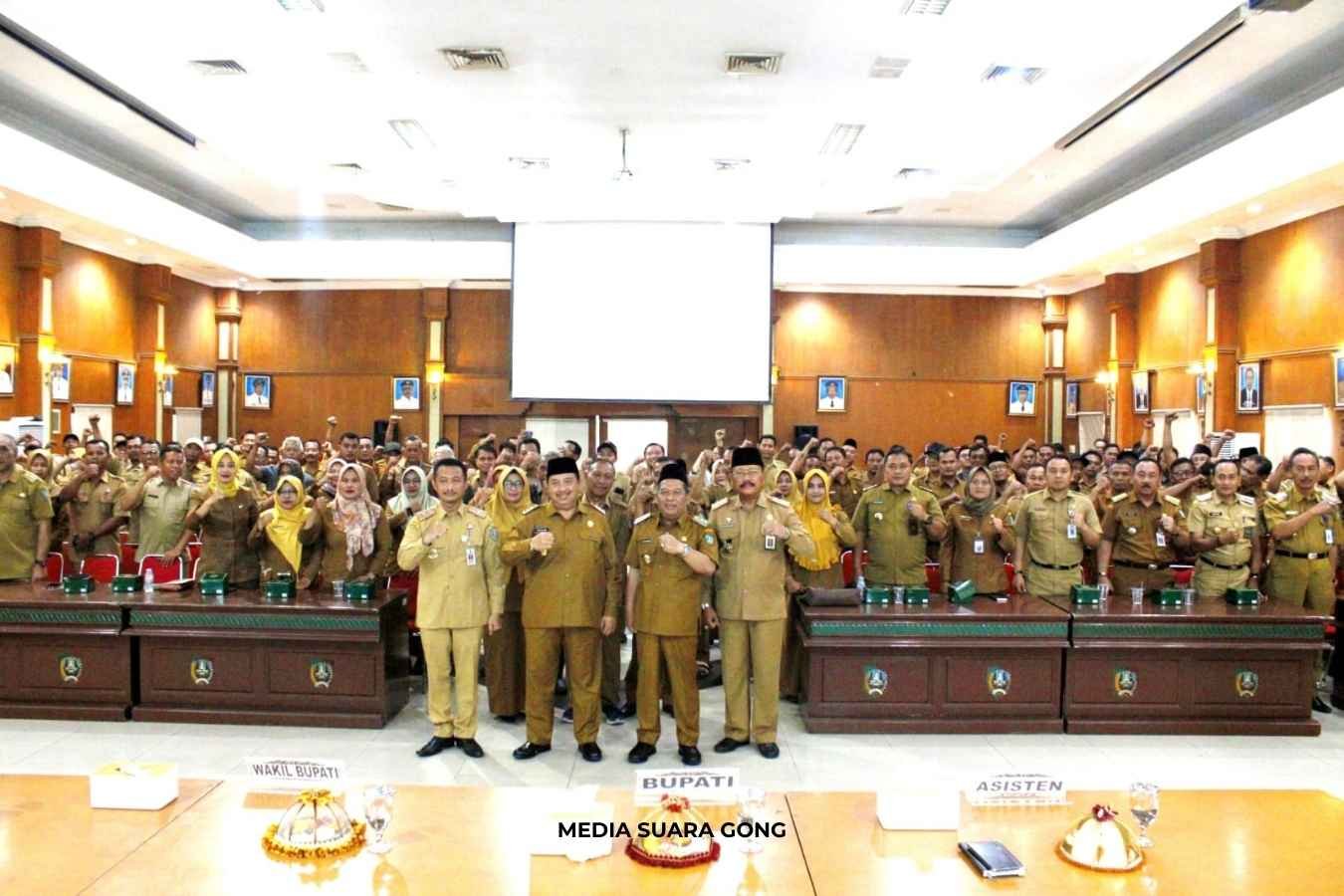 Acara ini dibuka langsung sama Bupati Jombang Warsubi, bareng Wakil Bupati Salmanudin Yazid. Nggak cuma itu, hadir juga jajaran penting kayak Asisten Pemerintahan Purwanto, Kadis PMD Sholahuddin Hadi Sucipto, Kepala BPJS Ketenagakerjaan Jombang Ibrahim Hadi Wibowo, plus para camat dan kepala desa se-Jombang.