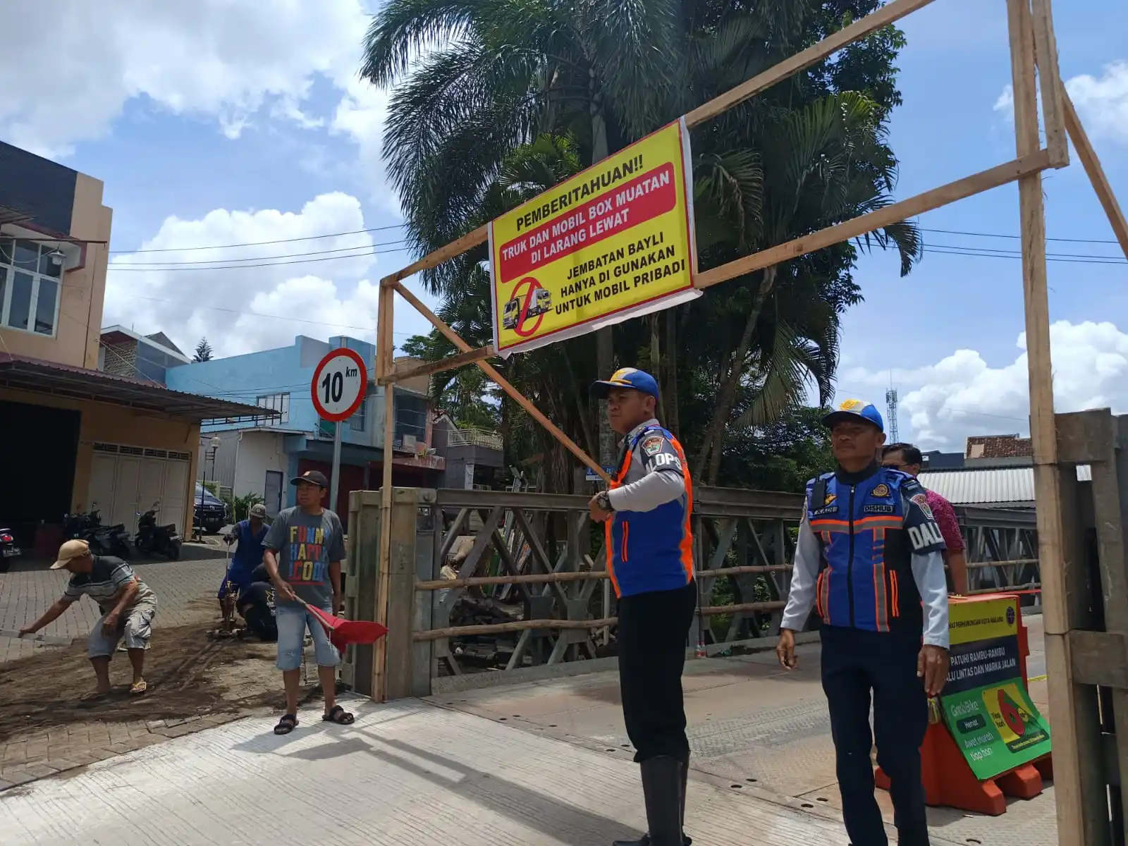 Dishub juga memasang rambu pengarah dan rambu larangan di kedua sisi jembatan, baik dari arah utara maupun selatan. Pembatasan kecepatan maksimal 10 km/jam turut diberlakukan. Selain itu, bus dan truk dilarang melintas.