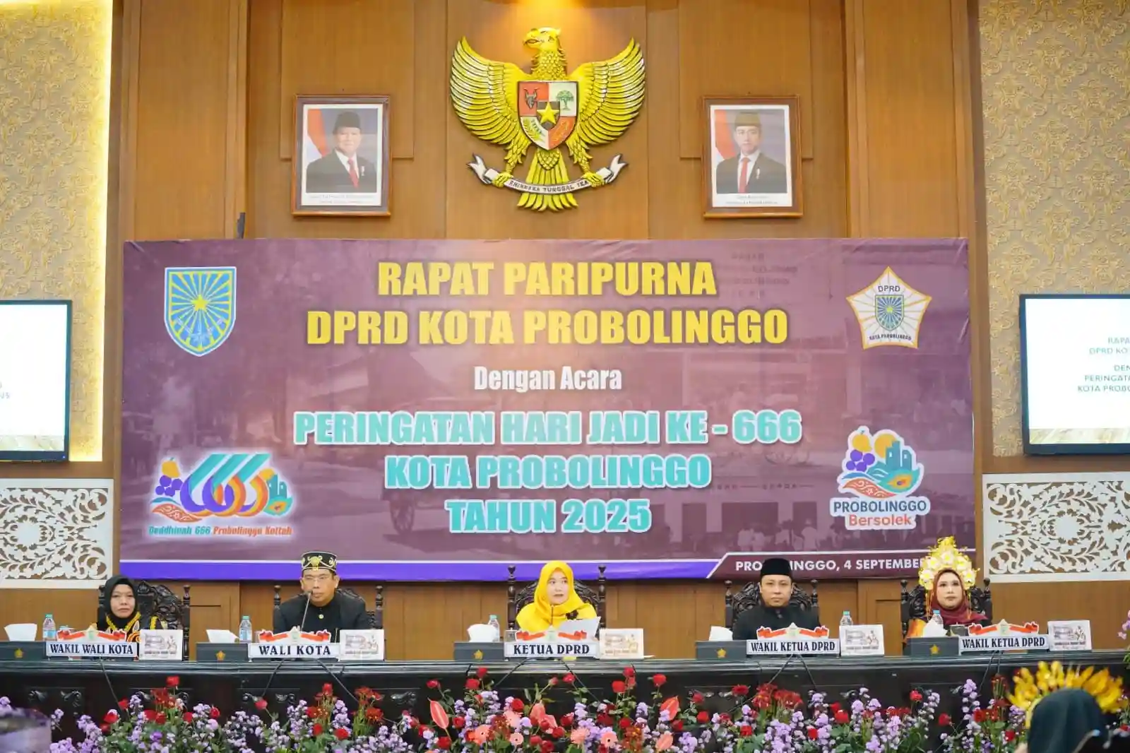 SUARAGONG.COM – Suasana penuh semangat dan kebersamaan menyelimuti Ruang Sidang Utama DPRD Kota Probolinggo, Kamis (4/9/2025). Rapat Paripurna DPRD digelar dalam rangka memperingati Hari Jadi ke-666 Kota Probolinggo.