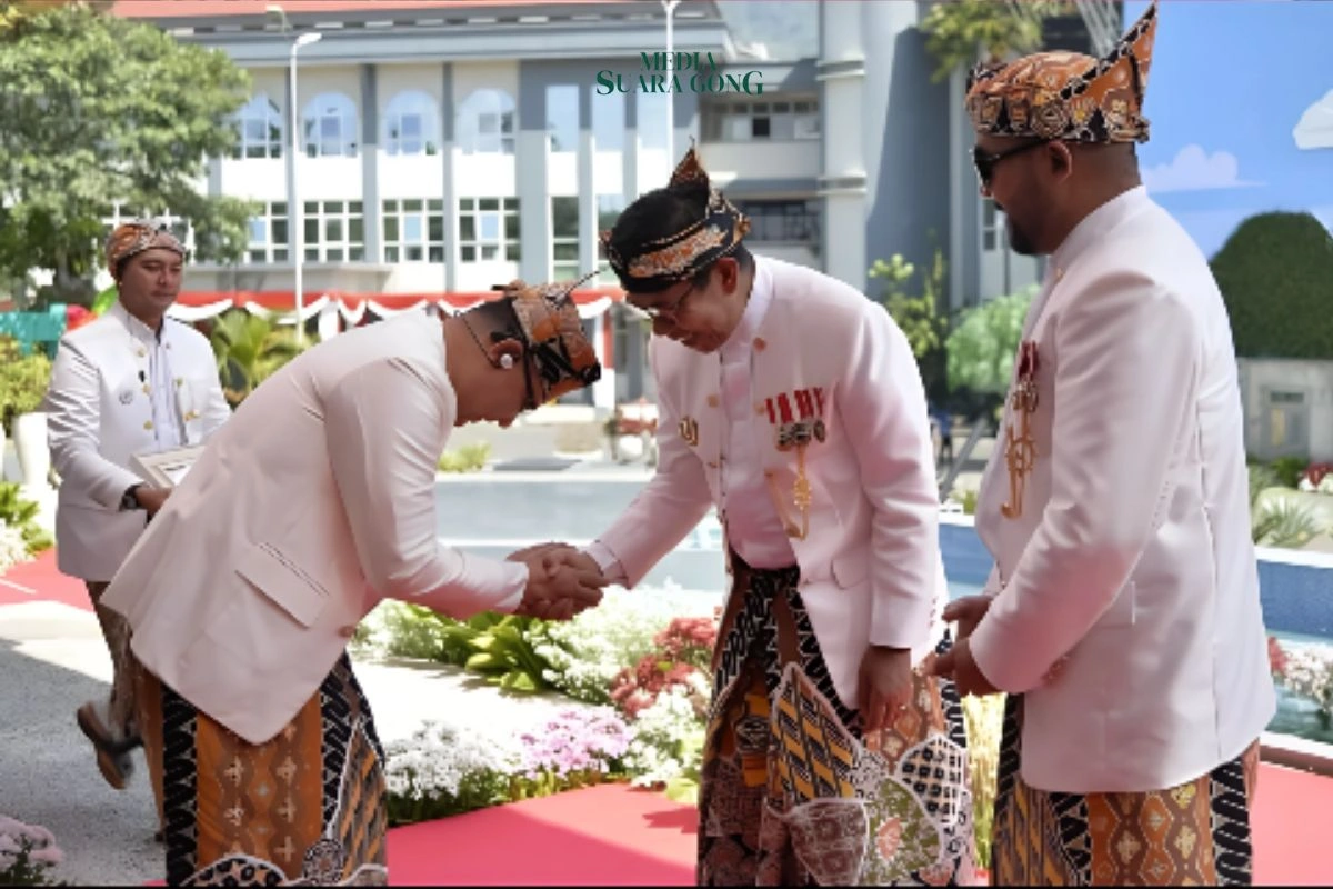 Penyerahan dilakukan langsung oleh Wali Kota Batu, Nurochman, didampingi Wakil Wali Kota Heli Suyanto, di halaman Balai Kota Among Tani. Momen itu disambut tepuk tangan meriah seluruh peserta upacara — simbol penghormatan atas kiprah seorang pemimpin yang dikenal bekerja dengan ketulusan dan kedekatan dengan rakyat.