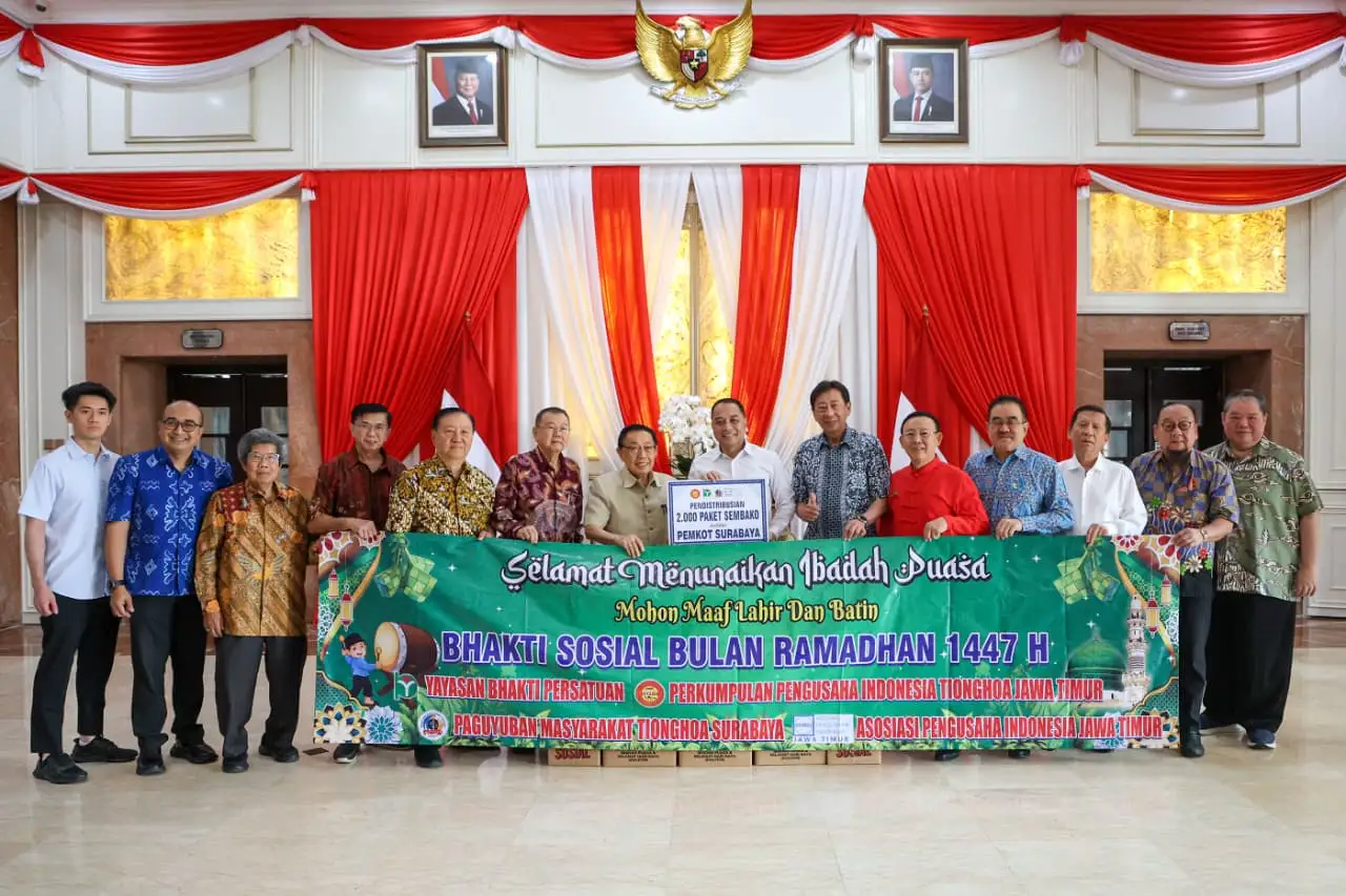SUARAGONG.COM – Menyambut Ramadan 1447 Hijriah, Pemerintah Kota Surabaya menerima bantuan sosial berupa 2.000 paket sembako dari Yayasan Bhakti Persatuan bersama Perkumpulan Pengusaha Indonesia Tionghoa (PERPIT) Jawa Timur, Paguyuban Masyarakat Tionghoa Surabaya, serta Apindo Jawa Timur, Jumat (27/2/2026).