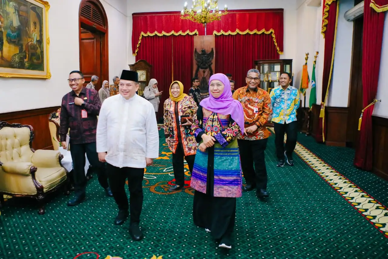 SUARAGONG.COM – Gubernur Jawa Timur, Khofifah Indar Parawansa, menegaskan pentingnya pemetaan Lahan Sawah Dilindungi (LSD) secara presisi guna menjaga keseimbangan antara ketahanan pangan dan pertumbuhan industri. Hal tersebut disampaikannya saat menerima audiensi Badan Pertanahan Nasional (BPN) Jawa Timur di Gedung Negara Grahadi, Senin (30/3/2026).