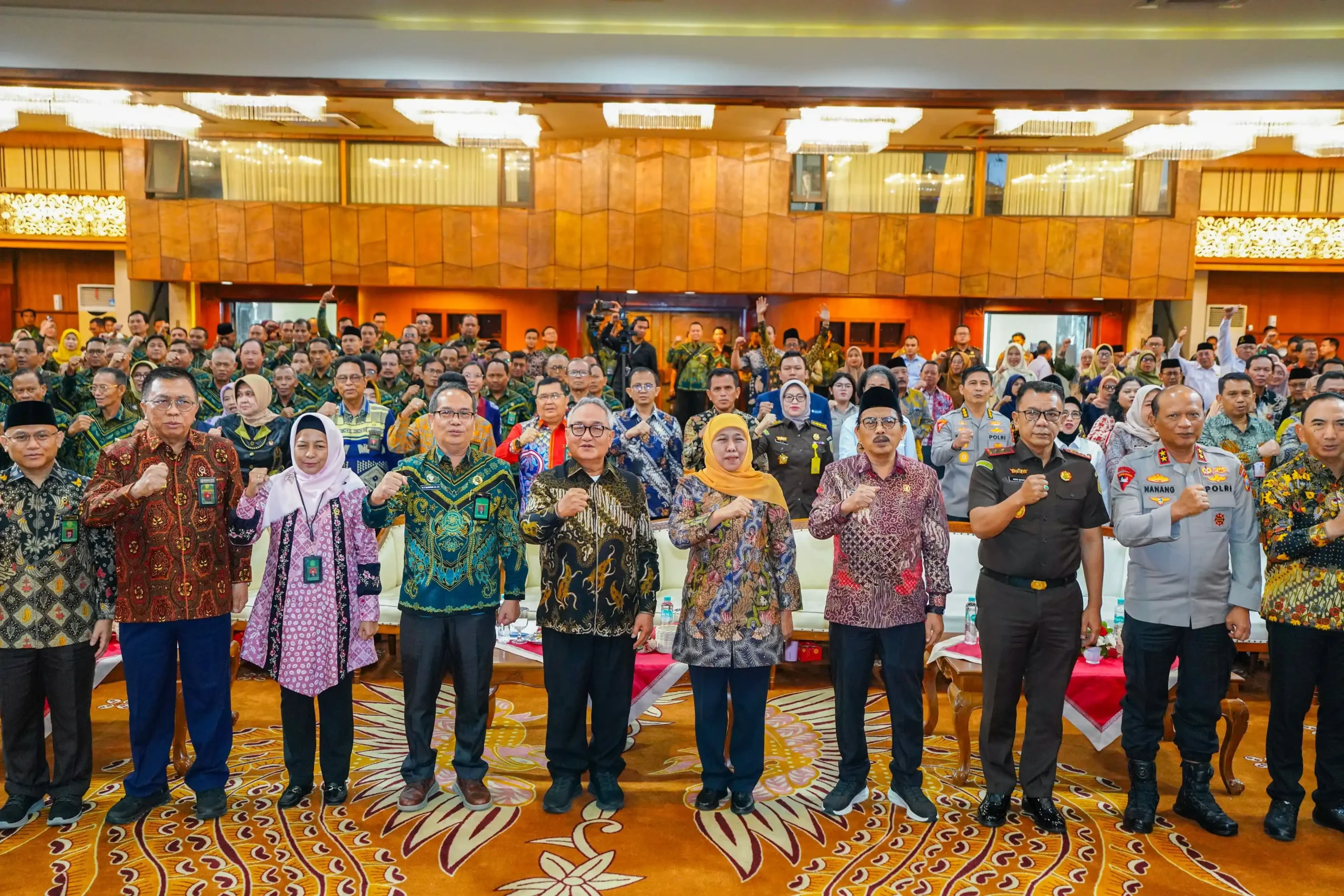 Selain Gubernur Khofifah, penandatanganan MoU juga dilakukan oleh Kapolda Jawa Timur dan Kepala Kejaksaan Tinggi Jawa Timur bersama Ketua Pengadilan Tinggi Agama Surabaya, serta disaksikan langsung oleh Ketua Muda Kamar Agama Mahkamah Agung RI.