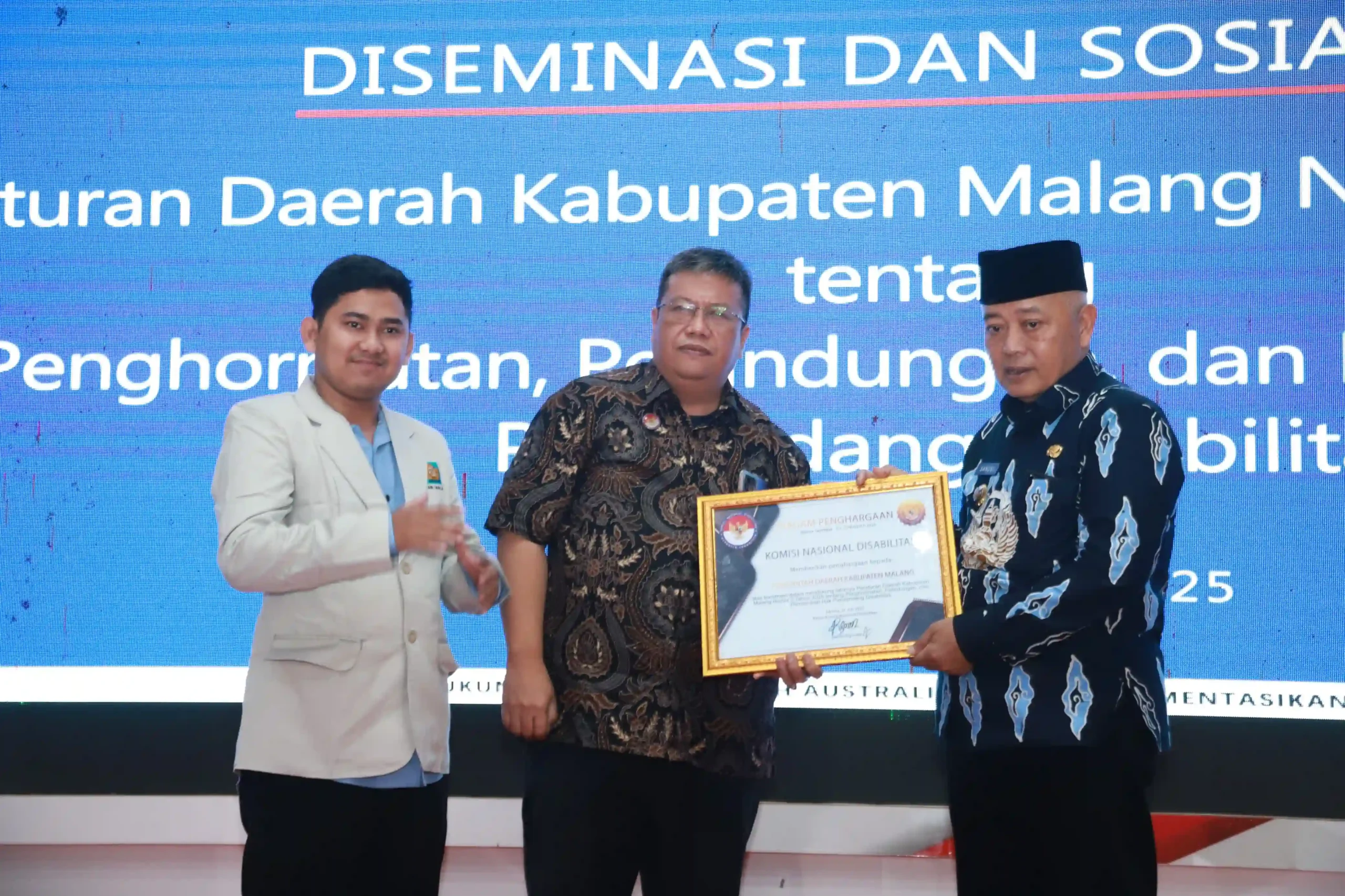 Penghargaan tersebut diserahkan oleh Komisioner Nasional Disabilitas Jonna Aman Damanik dalam acara yang berlangsung di Pendopo Panji, Kabupaten Malang, Kamis (31/7/2025).