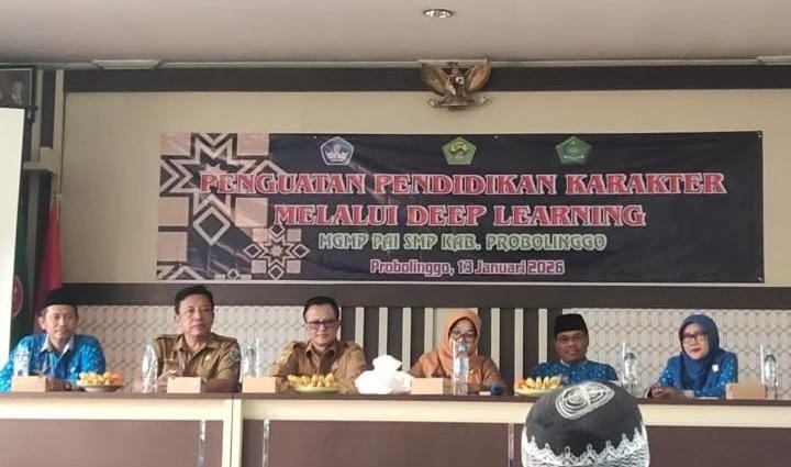 SUARAGONG.COM – Dinas Pendidikan dan Kebudayaan (Disdikdaya) Kabupaten Probolinggo terus mendorong penguatan pendidikan karakter siswa SMP. Salah satunya melalui pengembangan pembelajaran deep learning yang digelar Musyawarah Guru Mata Pelajaran (MGMP) Pendidikan Agama Islam (PAI) SMP, Selasa (13/1/2026).