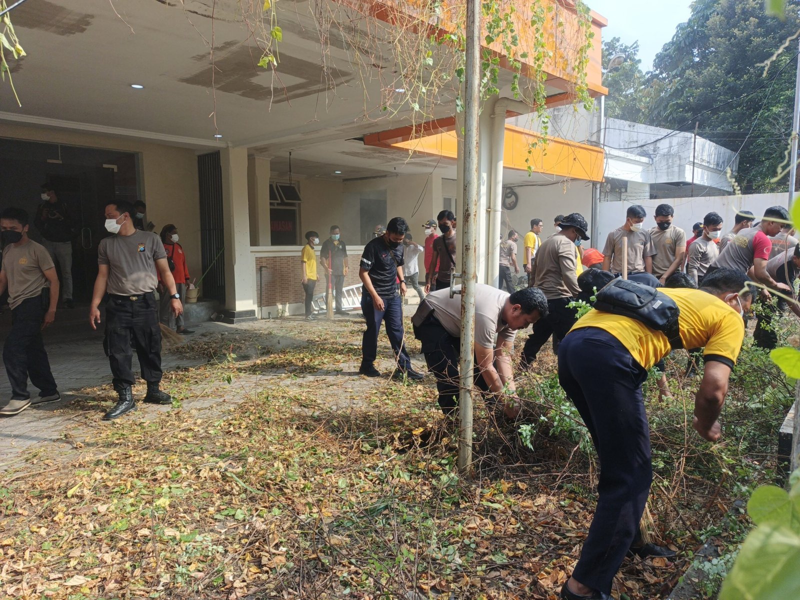 Kegiatan bersih-bersih kantor sementara ini juga melibatkan unsur tiga pilar—mulai dari kecamatan, kelurahan, kelompok sadar masyarakat, tokoh agama, hingga warga sekitar.