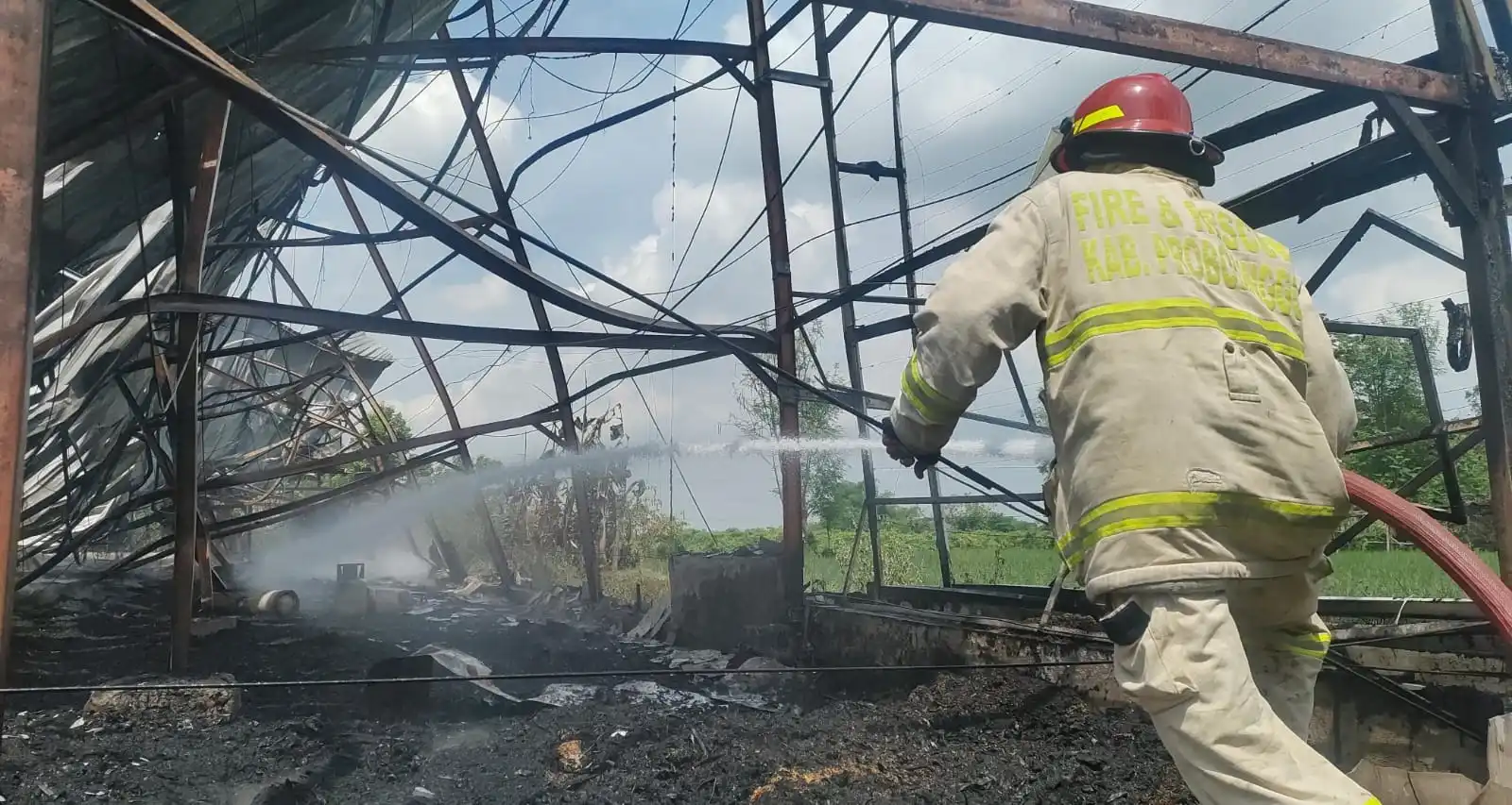 SUARAGONG.COM – Suasana pagi di Desa Klampokan, Kecamatan Besuk, Kabupaten Probolinggo, mendadak berubah mencekam. Sebuah kandang ayam tiga lantai milik Abdul Qomar, warga Desa Binor, Paiton, dilalap si jago merah pada Kamis (20/11/2025) sekitar pukul 06.00 WIB. Dalam hitungan menit, ribuan ayam yang sedang dipelihara hangus tak terselamatkan. Kerugian? Diperkirakan tembus ratusan juta rupiah.