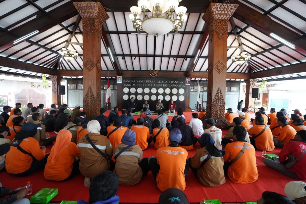Pj. Wali Kota Batu, Aries Agung Paewai ajak 116 orang penyapu jalan raya dan puluhan tenaga kebersihan di Balaikota Among Tani. Makan siang bersama di Pendopo Rumah Dinas usai melaksanakan sholat Jumat, (12/1/2024).