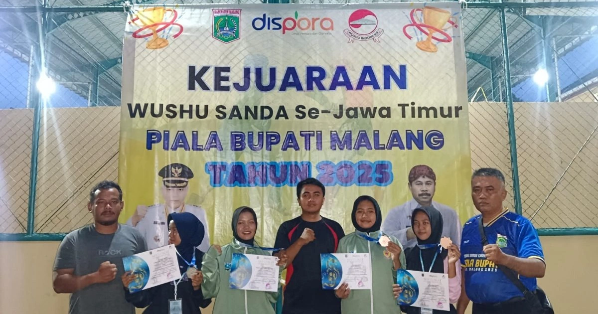 SUARAGONG.COM – Prestasi membanggakan kembali ditorehkan atlet Wushu Kabupaten Probolinggo dalam ajang Kejuaraan Daerah (Kejurda) Wushu Sanda Piala Bupati Malang 2025. Kejuaraan yang digelar di Aula SMKN 1 Kepanjen, Kabupaten Malang, pada 19–21 Desember 2025 tersebut menjadi ajang pembuktian hasil pembinaan atlet wushu Probolinggo di tingkat regional Jawa Timur.